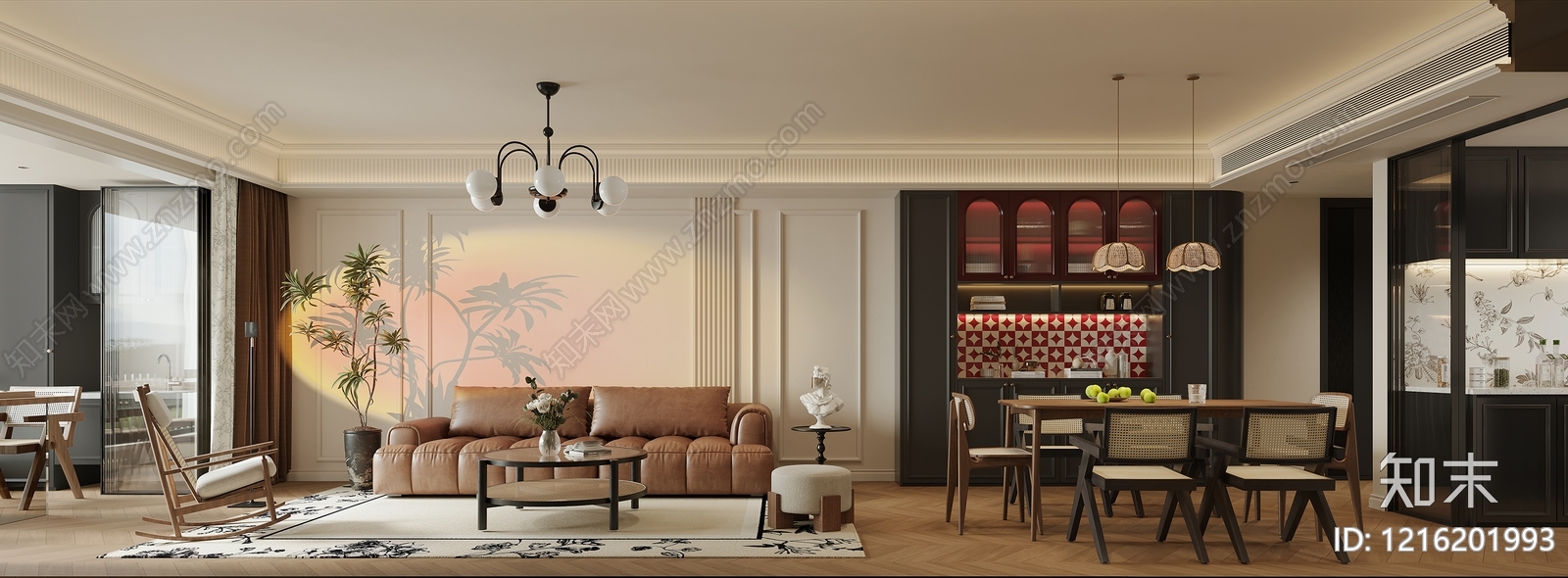 中古风客餐厅 中古风客餐厅 沙发组合 茶几组合