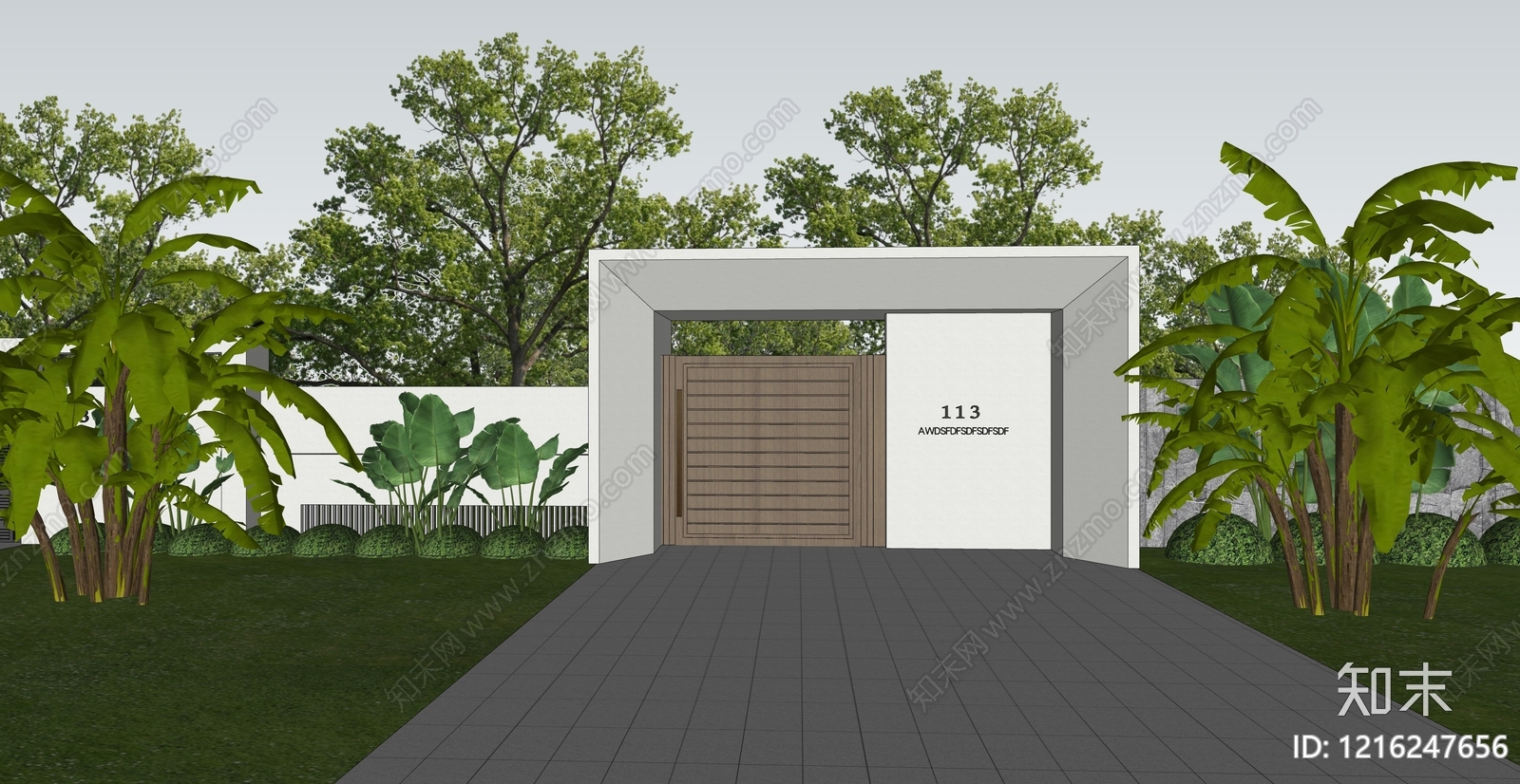 - 现代简约入口大门 现代大门 庭院大门 景观大门