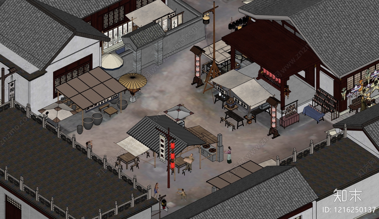 新中式影视 古代街道 古代集市 街道摊位 小吃街 古代戏台