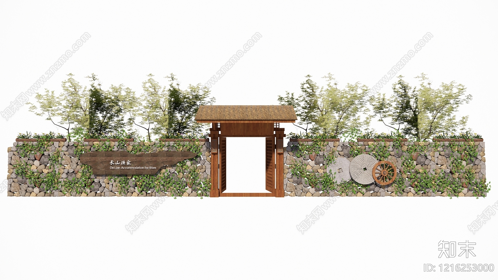 - 中式庭院门 门头 院墙 景观门头 篱笆墙 院落门头