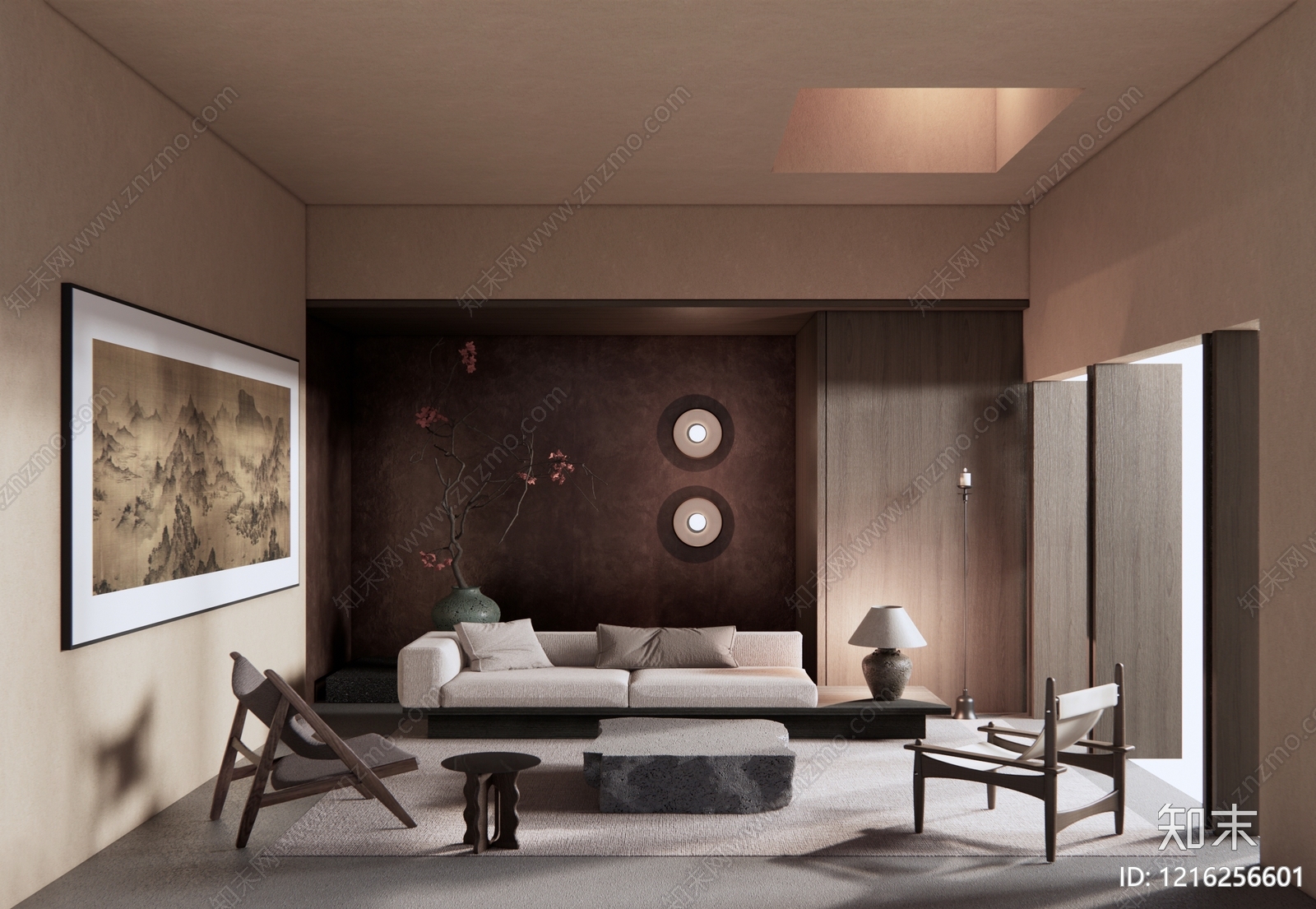 新中式家居客厅 沙发茶几台灯 休闲椅壁灯花艺 边几挂画烛台