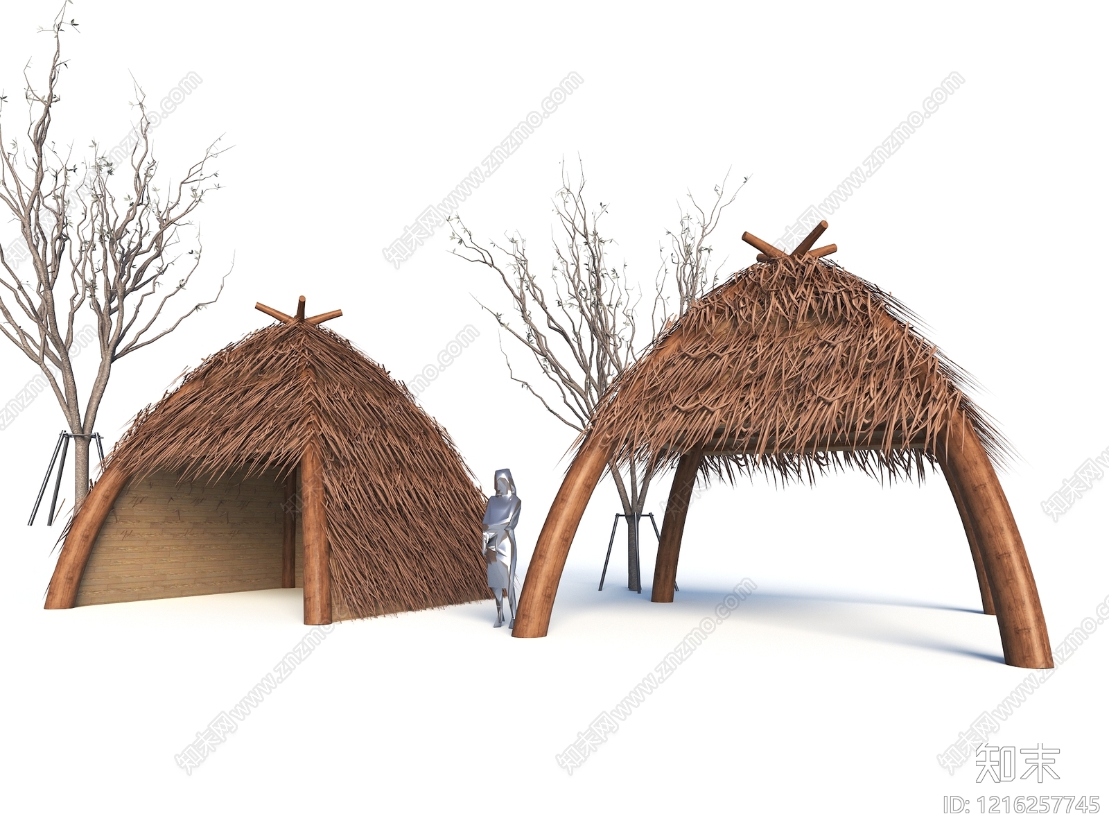 现代乡村民房 茅草亭 茅草构筑物 茅草休息廊