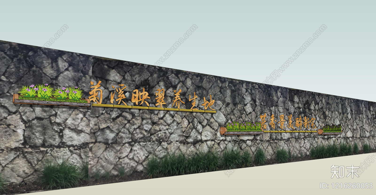 新中式景观艺术装置 墙面装饰 美丽乡村 竹构建 花篮 景墙