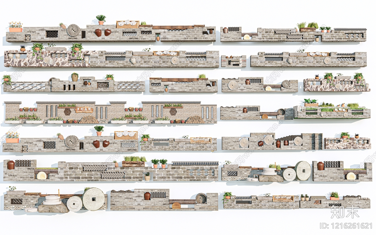 新中式景观景墙 新中式乡村景墙 院墙 民俗景墙 毛石景墙 砖墙