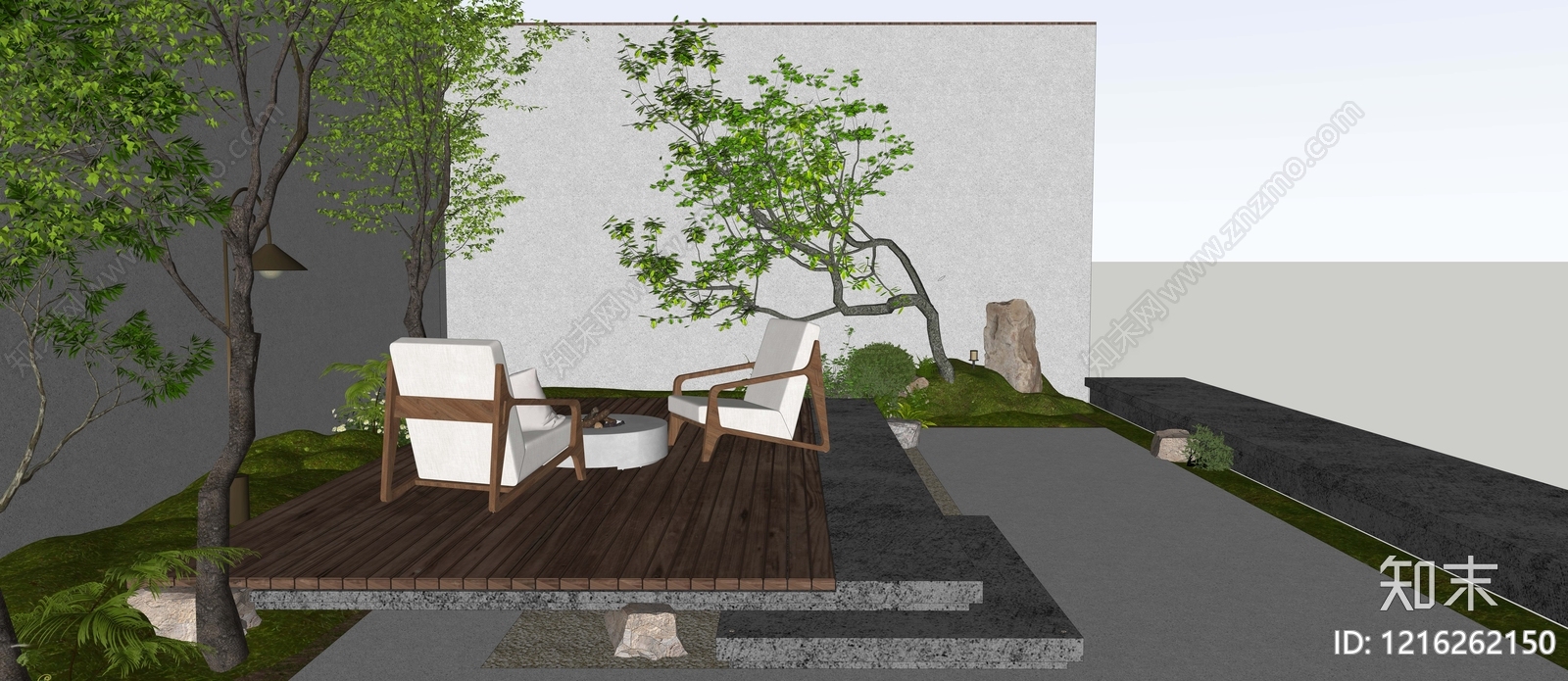 新中式别墅庭院 别墅庭院 花园景观