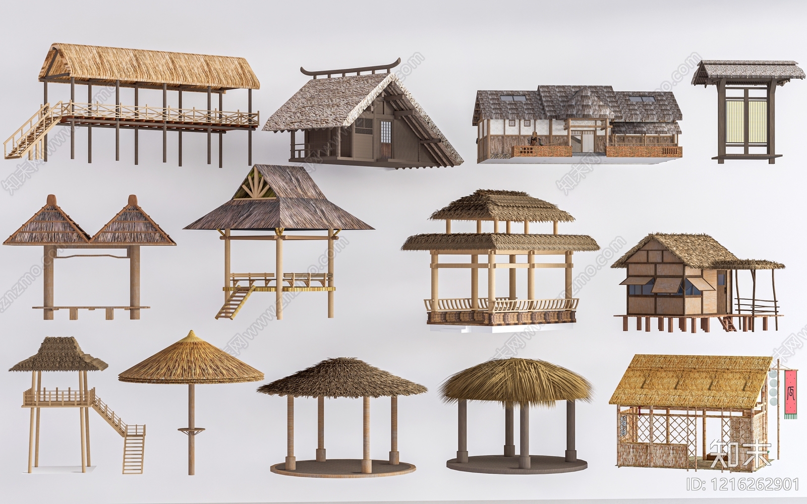 - 传统茅草建筑亭子 现代小木屋 茅草棚 茅草亭 小建筑 乡村建筑