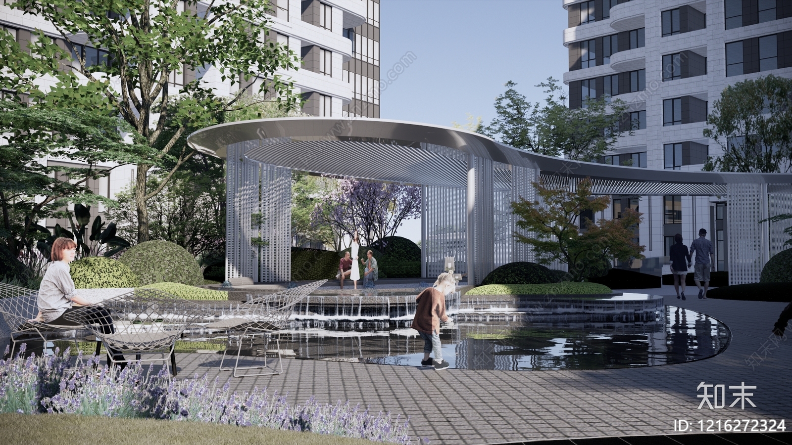 - 现代简约小区景观 住宅景观da 大区景观 小区景观