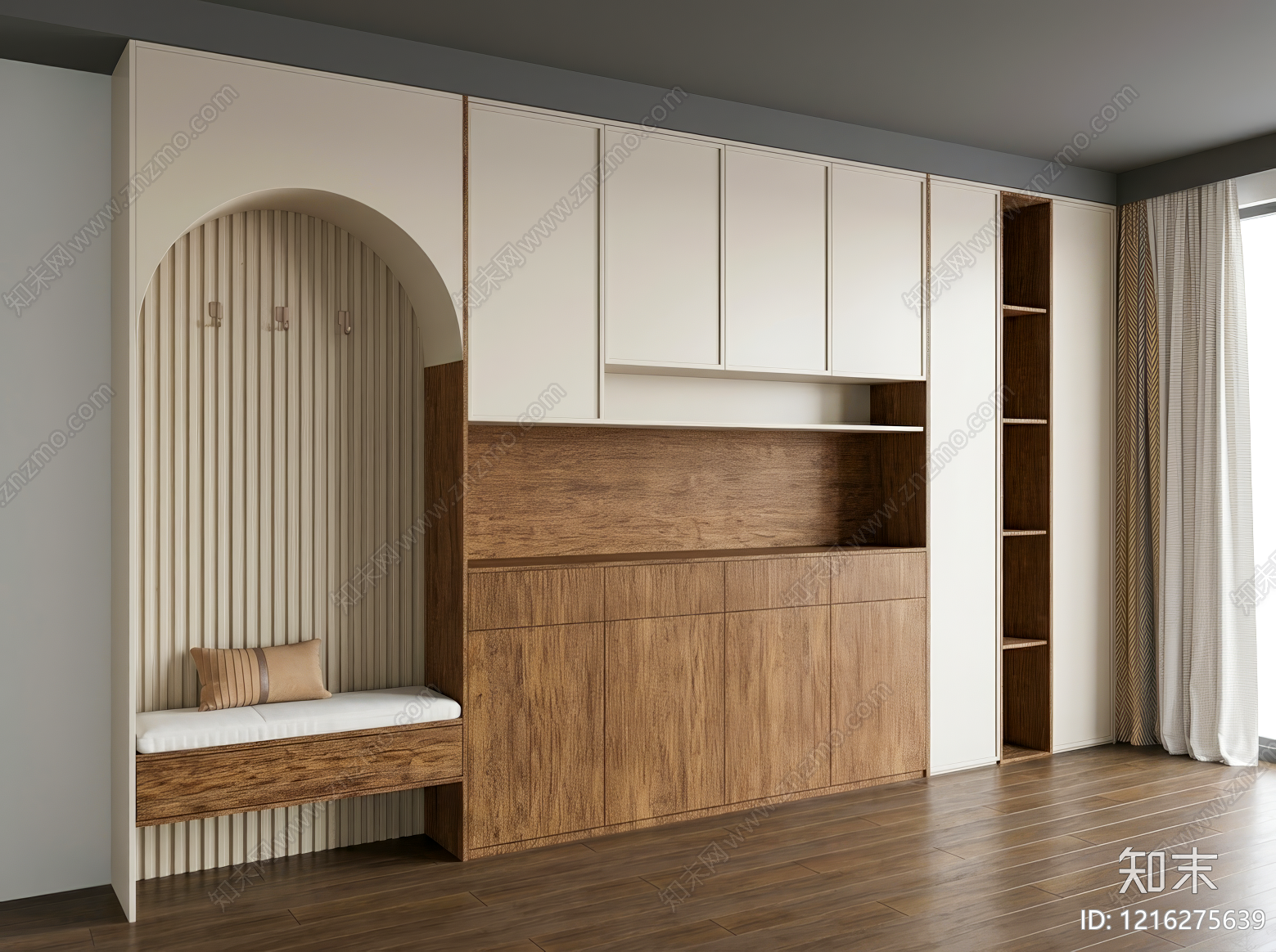 - 中古风玄关柜 现代中古玄关端几 侘寂中古端几挂画 现代中古盆栽台灯 侘寂中古端几盆栽 现代中古窗帘