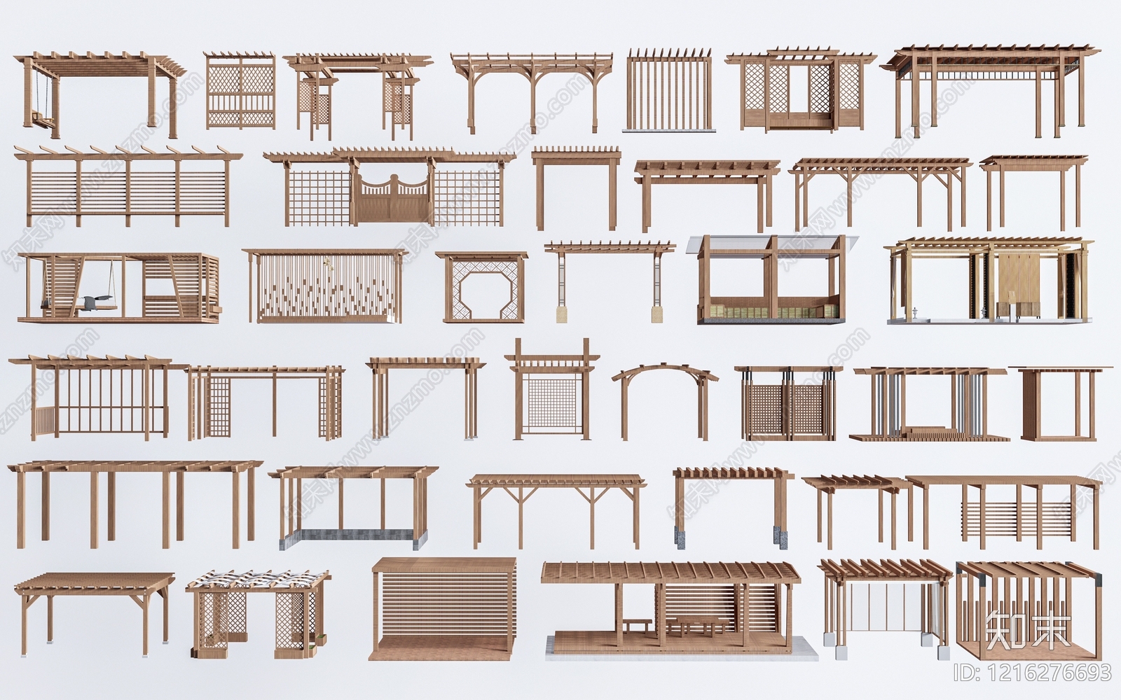 - 原木风廊架 现代廊架 木花架 木构架 葡萄架 亭子 景观廊架