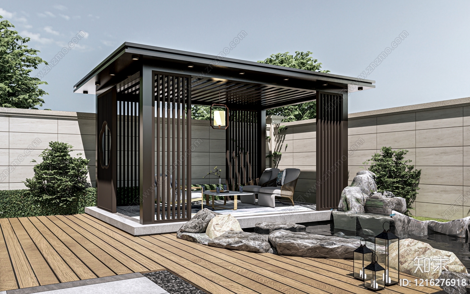 - 新中式景观会客厅 景观廊架 景观亭子 户外休闲空间