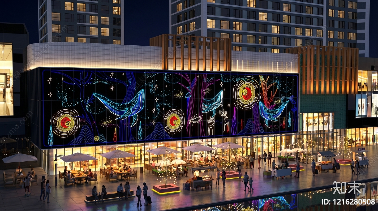 - 现代主义商业街 霓虹灯 现代商业街 商业综合体