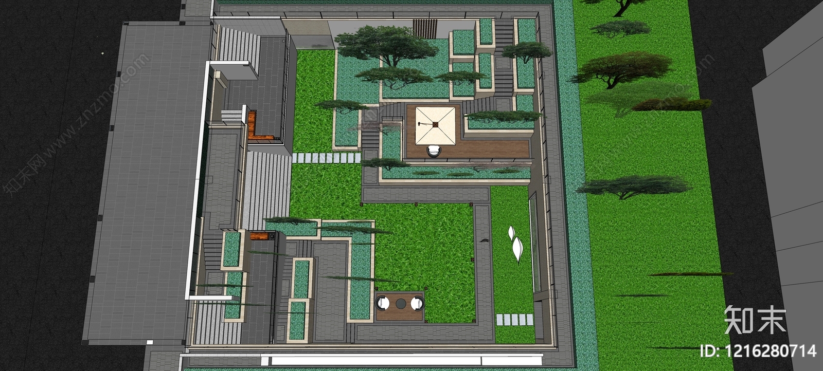 新中式景观别墅庭院 庭院 花园 下沉空间