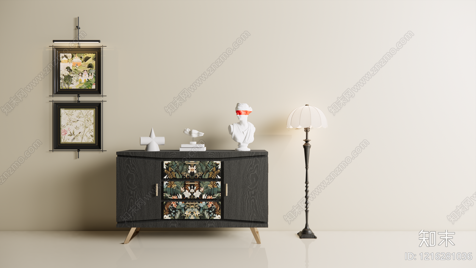 - 中古风玄关柜 现代中古玄关端几 侘寂中古端几挂画 现代中古盆栽台灯 侘寂中古端几盆栽 现代中古窗帘