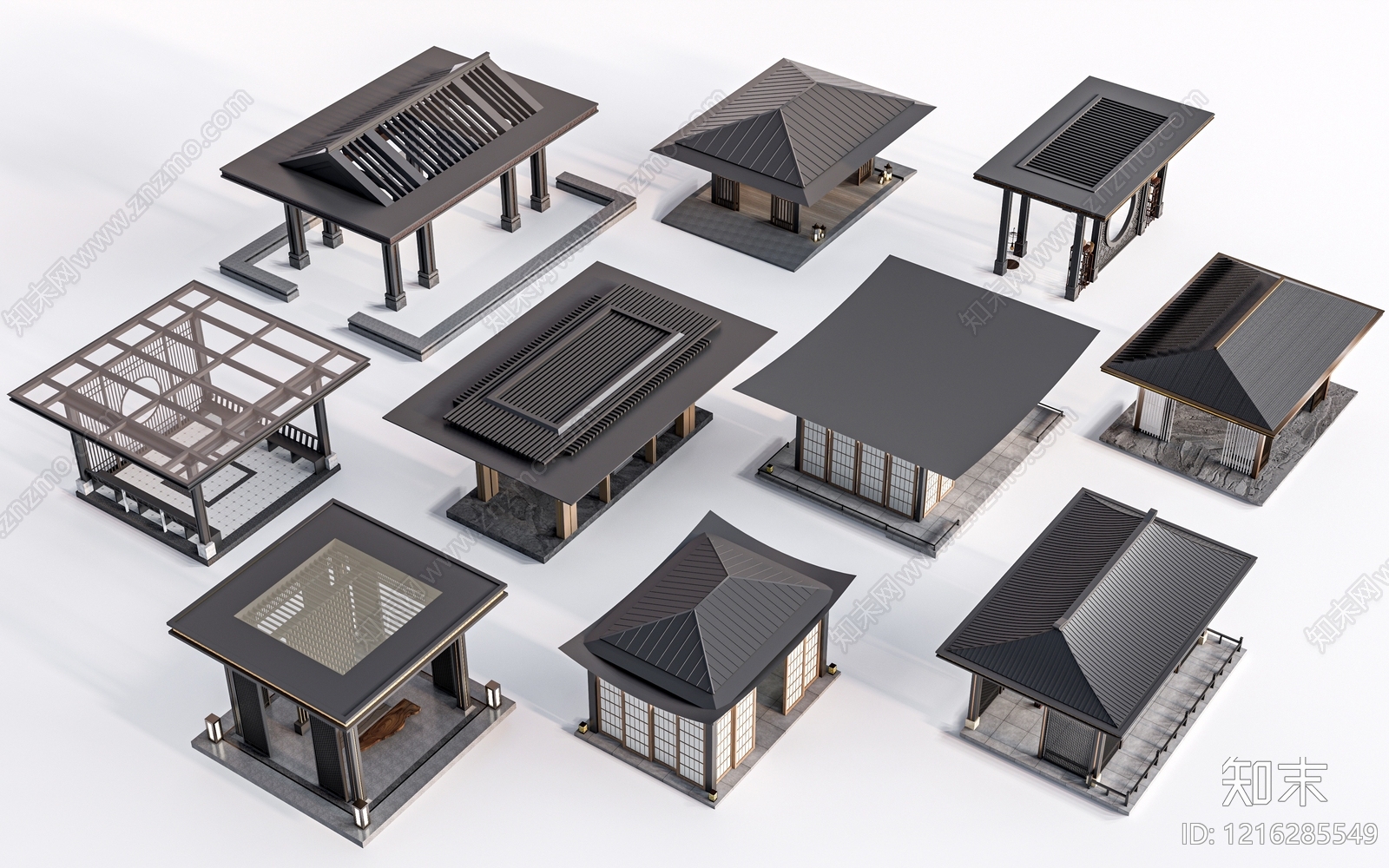 - 新中式古建筑 四角亭 圆亭 重檐亭 六角亭 八角亭