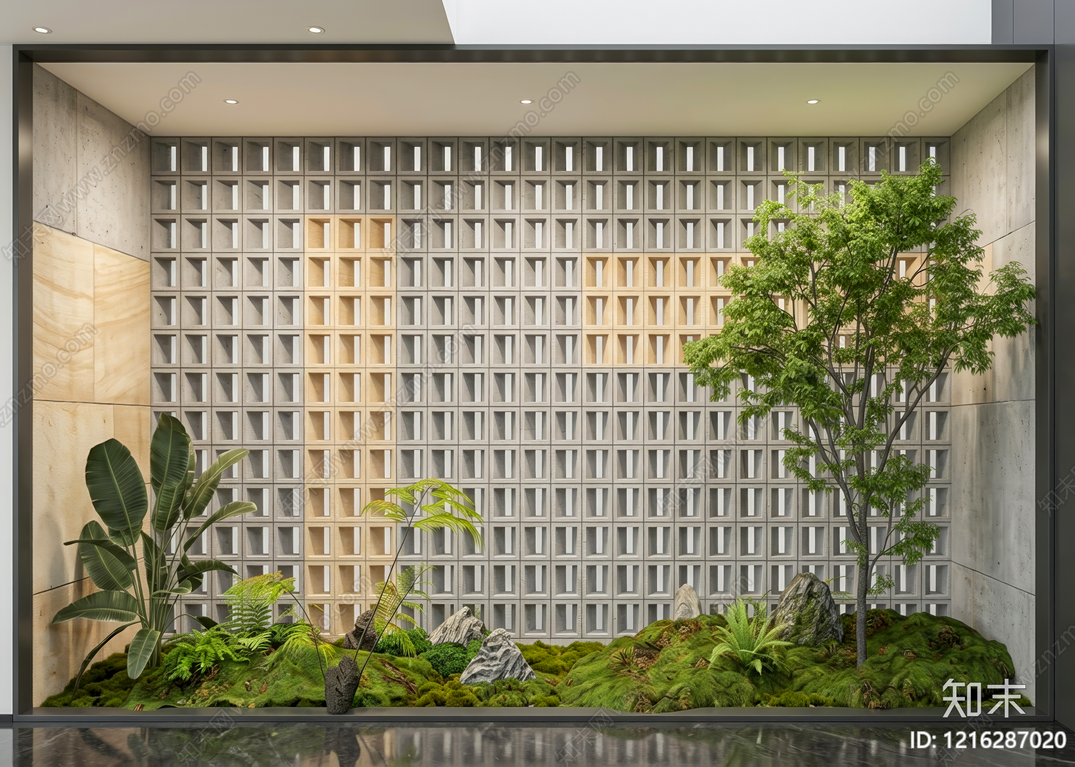 - 极简主义植物组合 盆景 景观池
