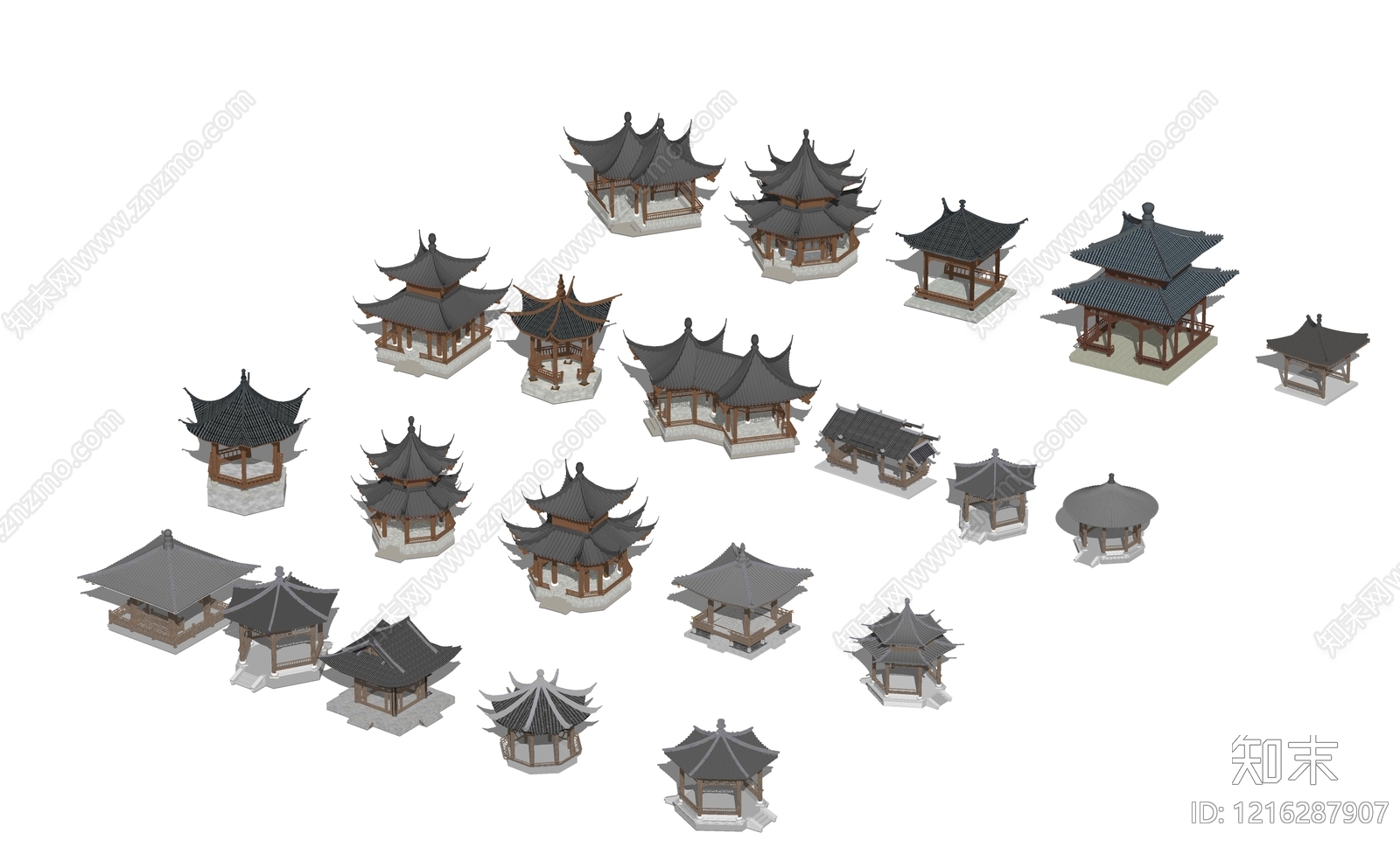 - 新中式古建筑 四角亭 圆亭 重檐亭 六角亭 八角亭