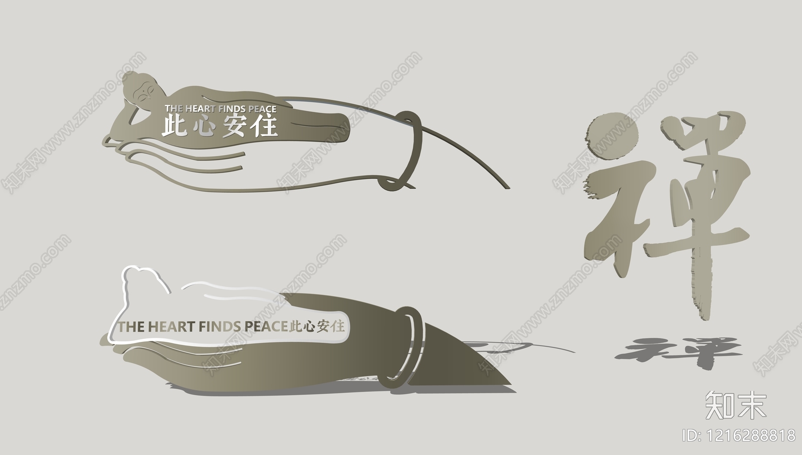 禅意艺术装置 禅意 拈花指 卧佛 logo
