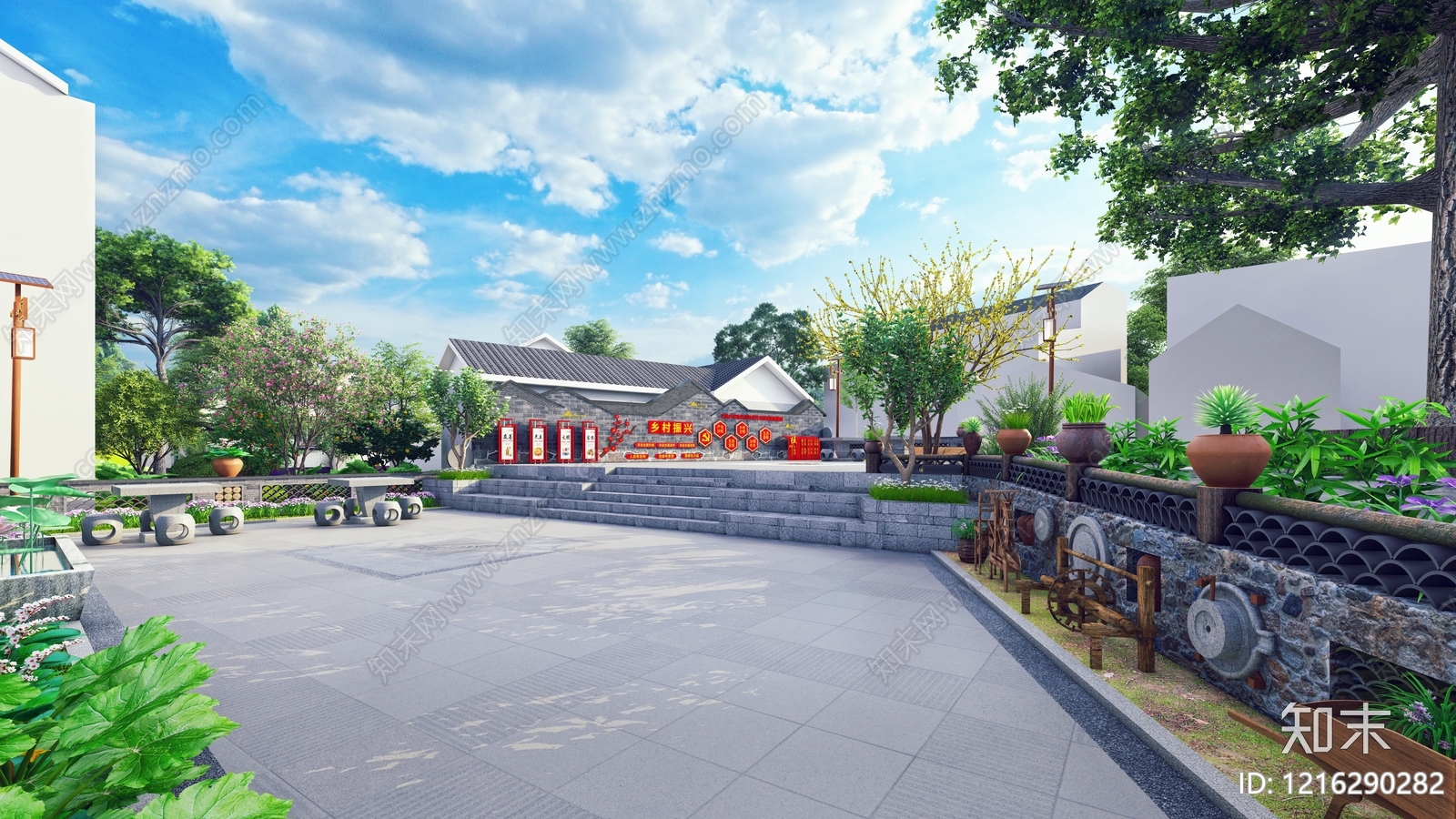 - 新中式景观广场景观 特色乡村活动广场