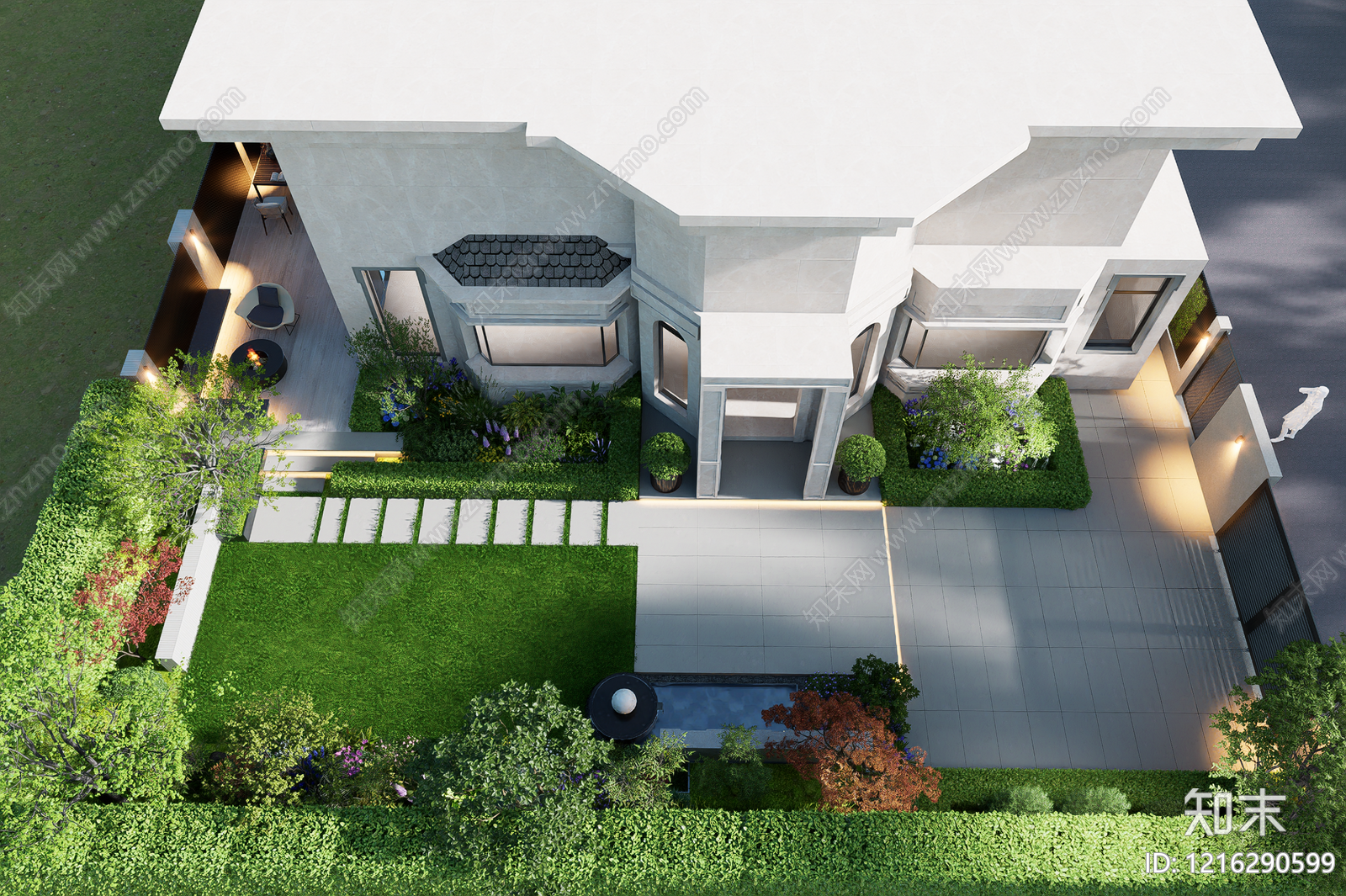 - 新中式别墅庭院 庭院景观 别墅花园 别墅庭院