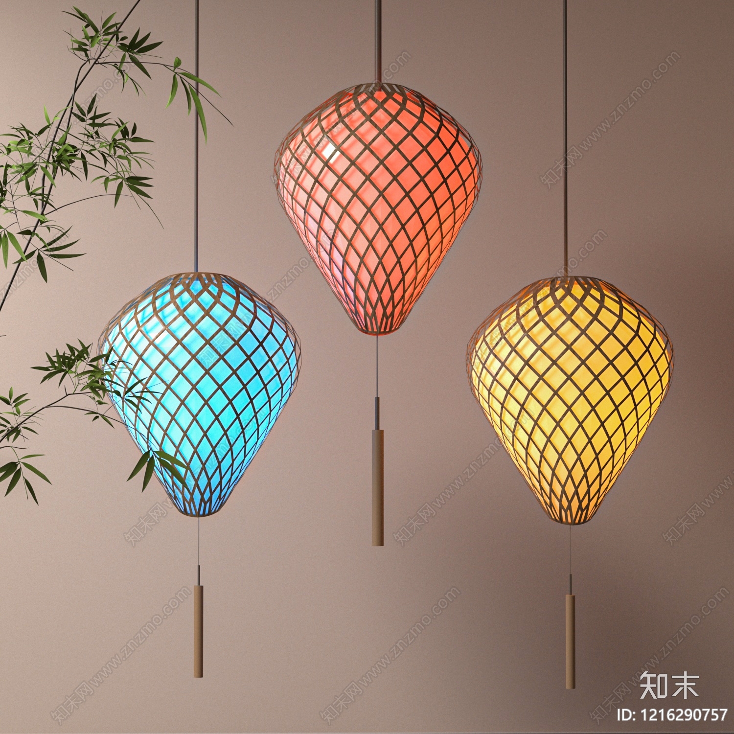 - 新中式吊灯组合 中式灯笼 艺术灯笼吊灯