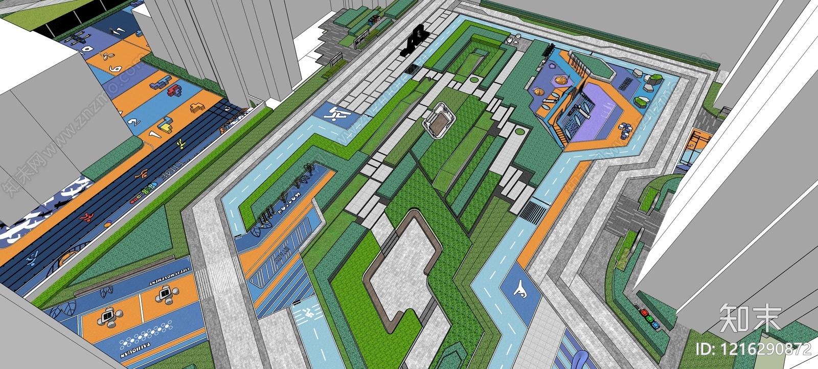 - 现代简约小区景观 登高面