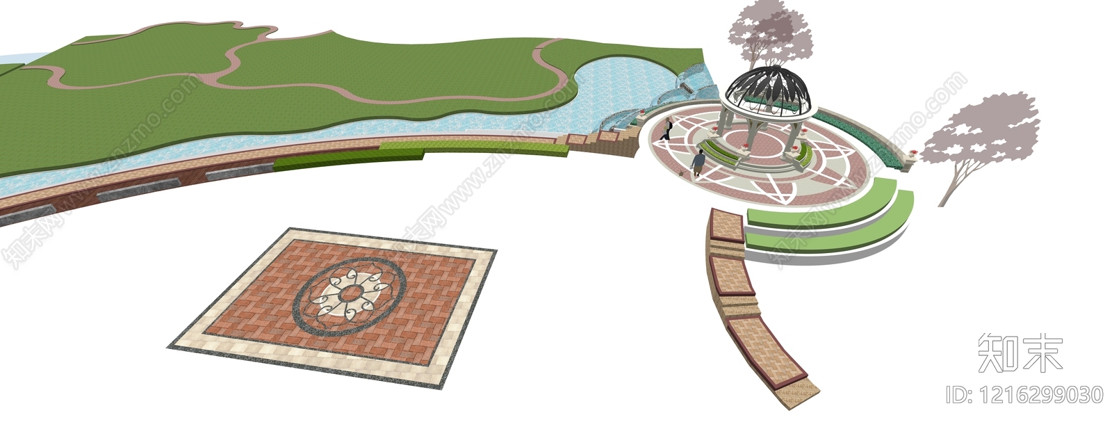 欧式小区景观 小区景观 景观亭 景观铺装 滨水景观