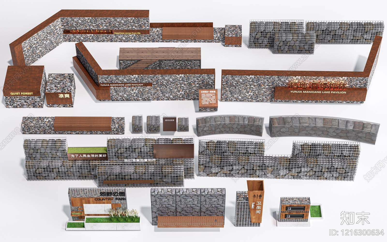 新中式景观景墙 现代石笼景墙 景墙围墙 锈板景墙 石头围墙