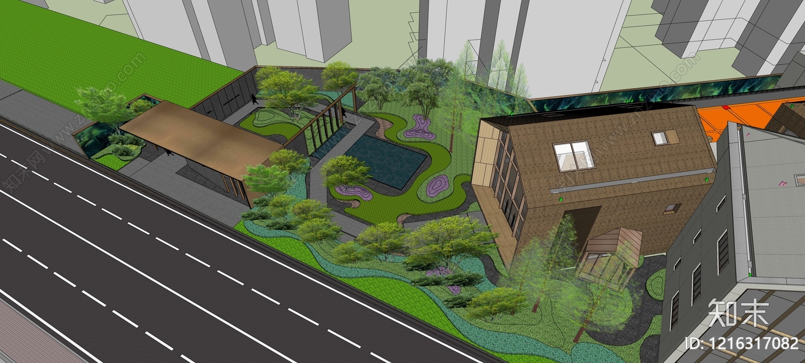 - 现代简约景观小区景观 居住区花园空间 登高面会客 草坪空间 花园洽谈空间