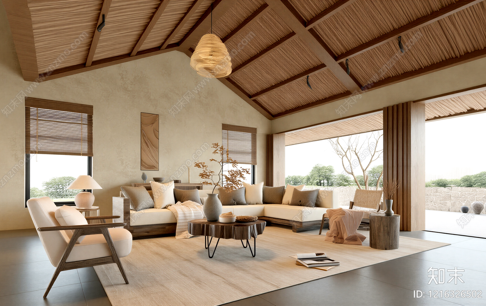 侘寂风家居客厅 中古风客厅 别墅客厅 原木风客厅
