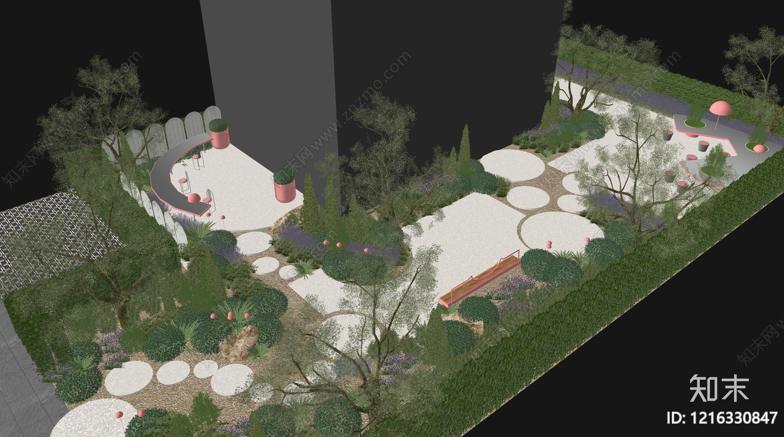 现代简约休憩花园 艺术疗愈花园