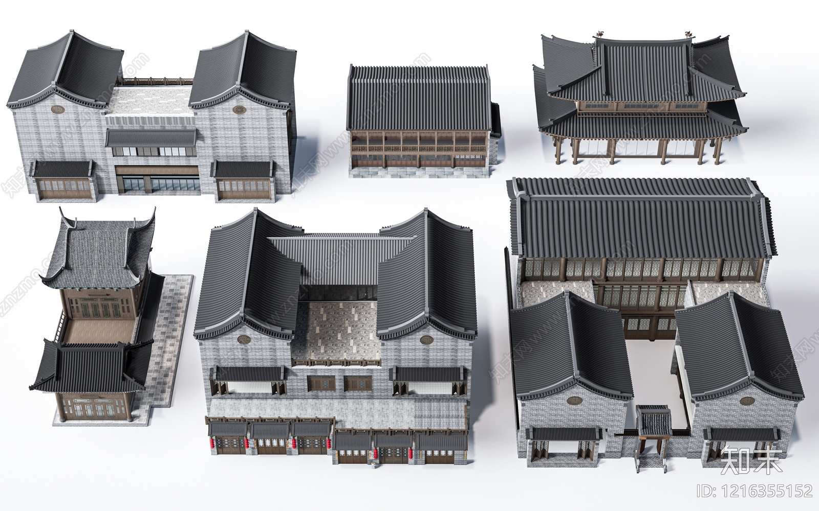 新中式商业街 新中式四合院 乡村民房 民宿建筑 中式古建筑