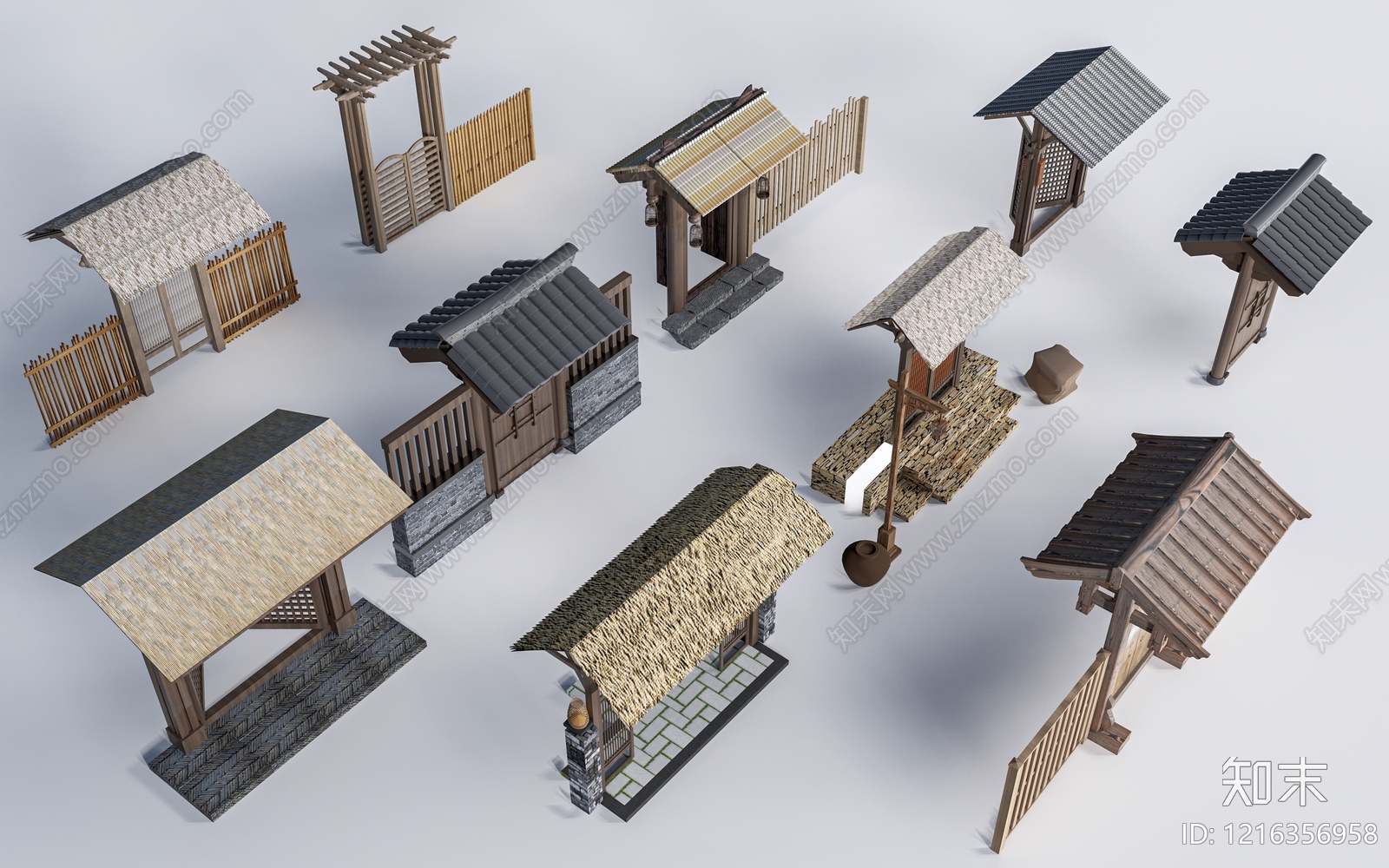 - 中式庭院门 门头 院墙 景观门头 篱笆墙 院落门头