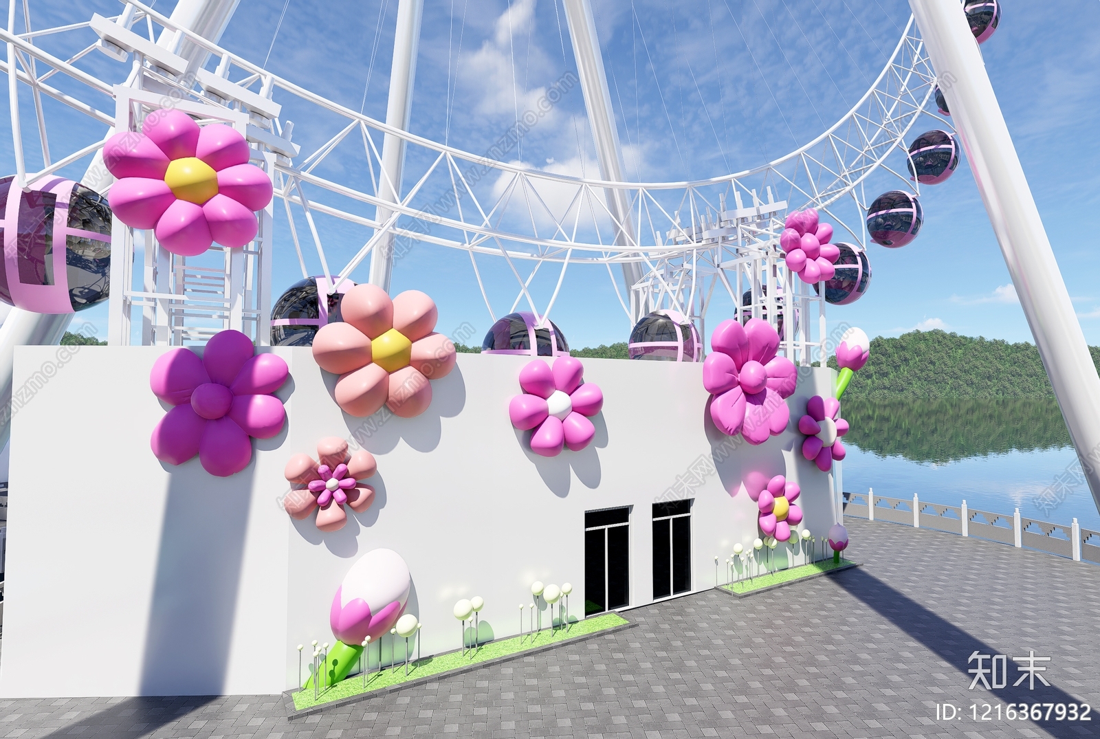 现代主义景观小品 摩天轮 花瓣艺术装置 气模 滨水景观