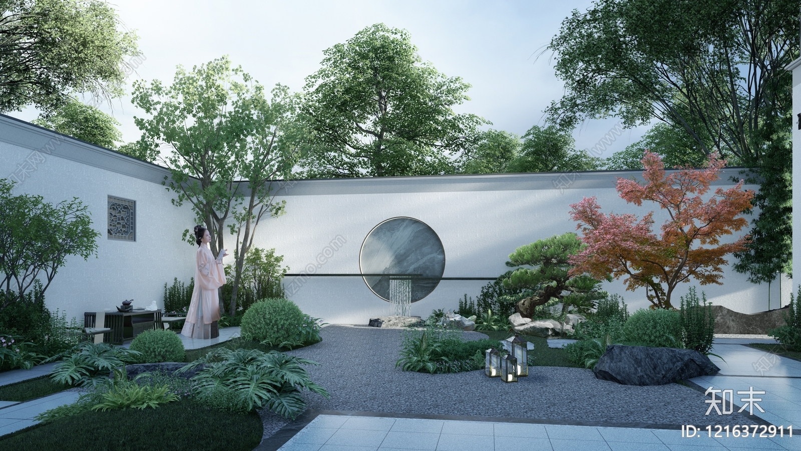 - 新中式别墅庭院 新中式景墙 庭院景观 别墅庭院