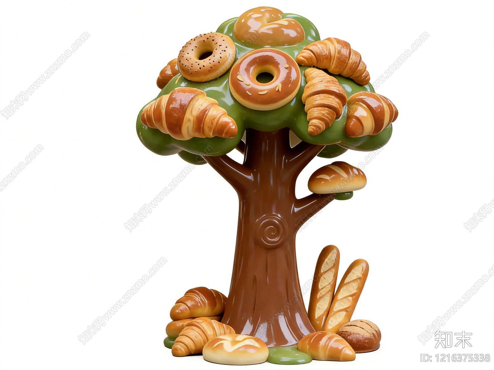 - 卡通拟物IP形象 面包树雕塑 商业空间摆件