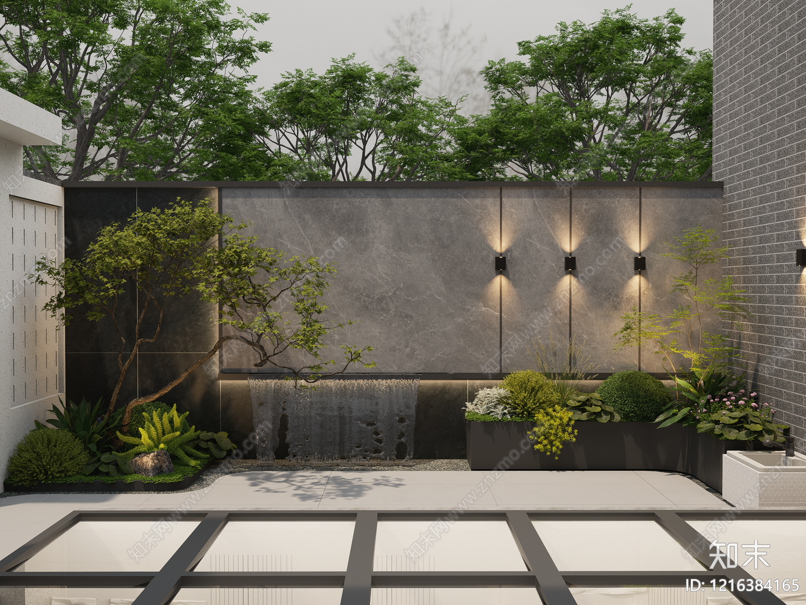 - 现代简约别墅庭院 园林庭院景观 景观园林小品 新中式日式禅意 植物墙花园