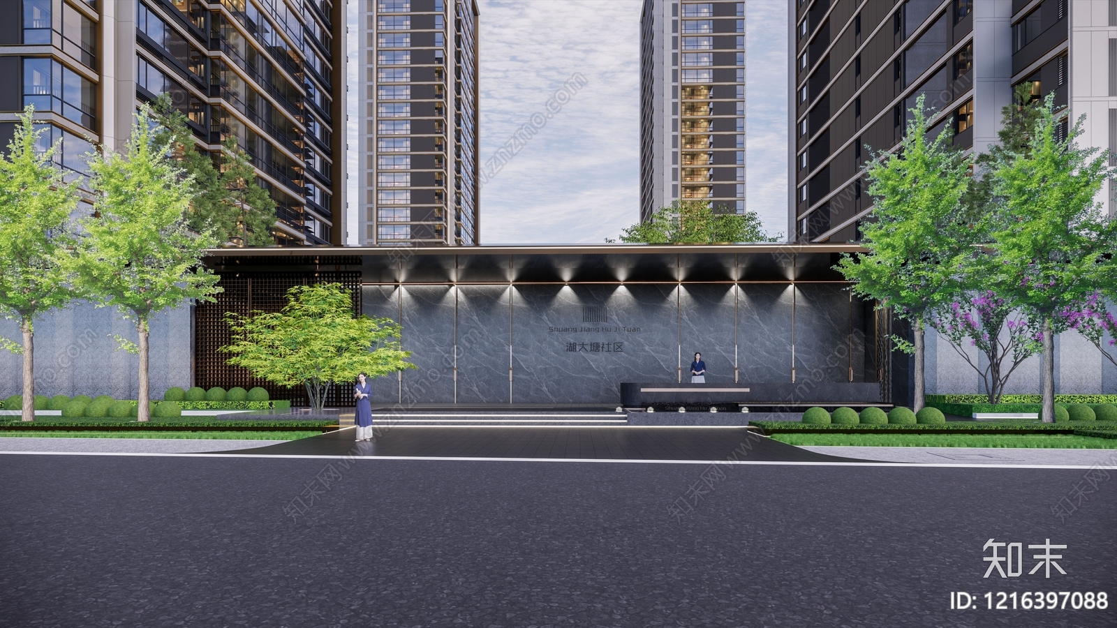 - 新中式入口大门 现代小区单元门 单元入口 住宅楼入口大门