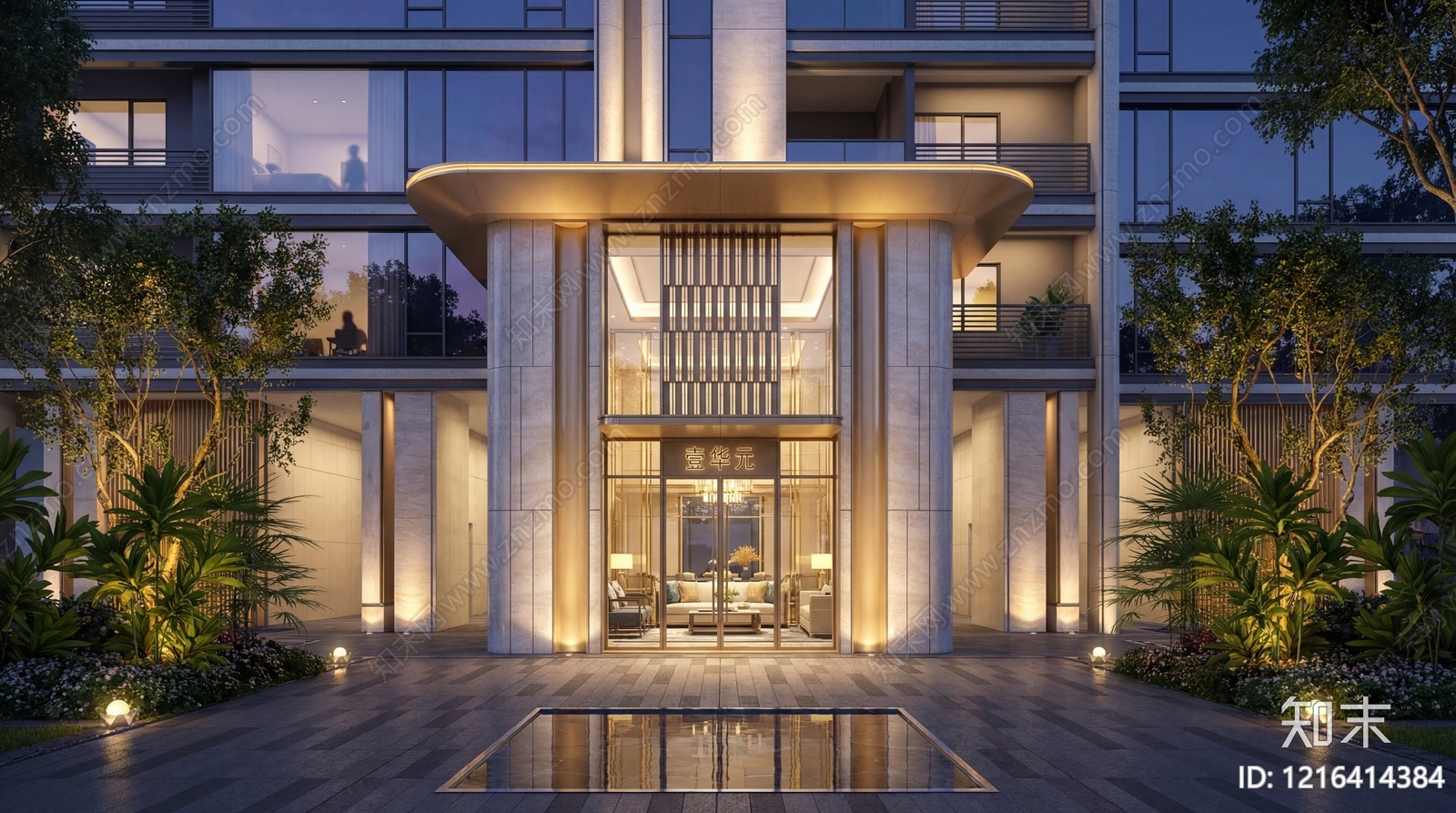 - 现代轻奢小区建筑 住宅入户大堂 单元门头 轻奢酒店式大堂 住宅门头 豪宅归家大堂