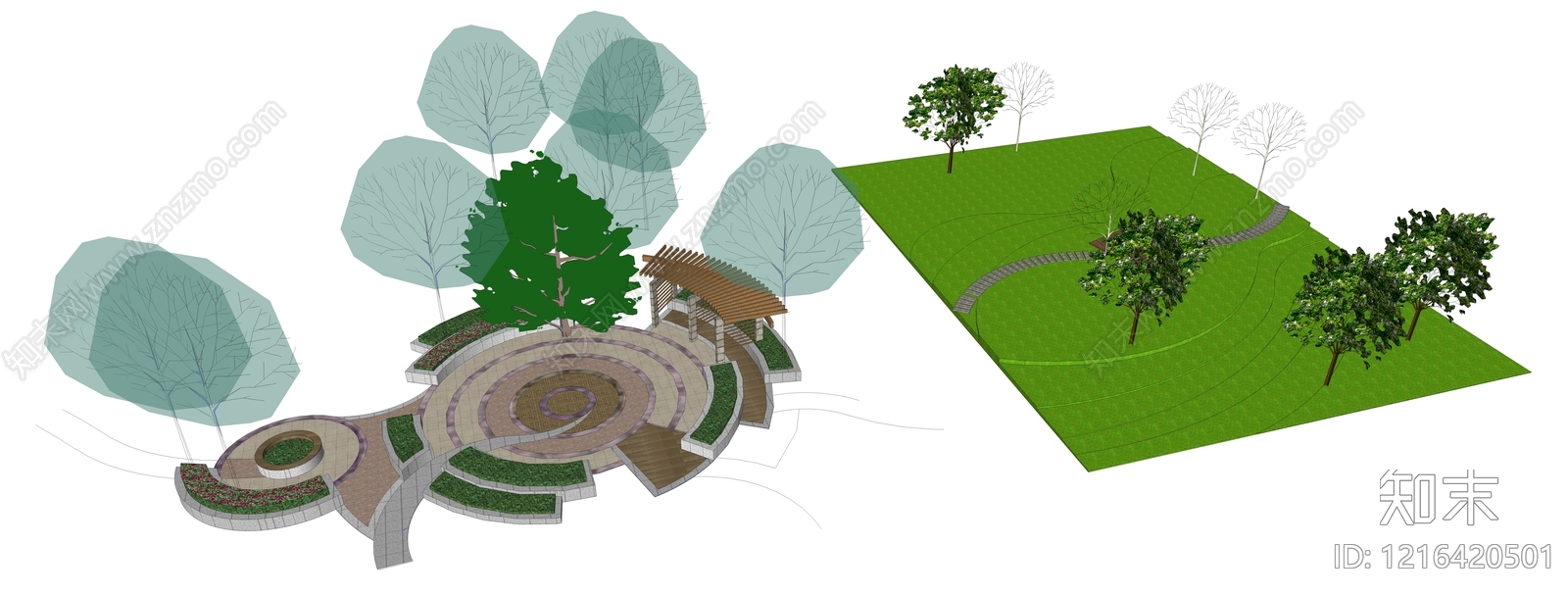 - 现代景观休憩花园 口袋公园 景观廊架 景观地形 景观广场