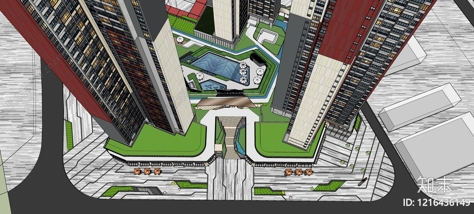 - 现代简约小区景观 小区景观 登高面景观 硬质铺装