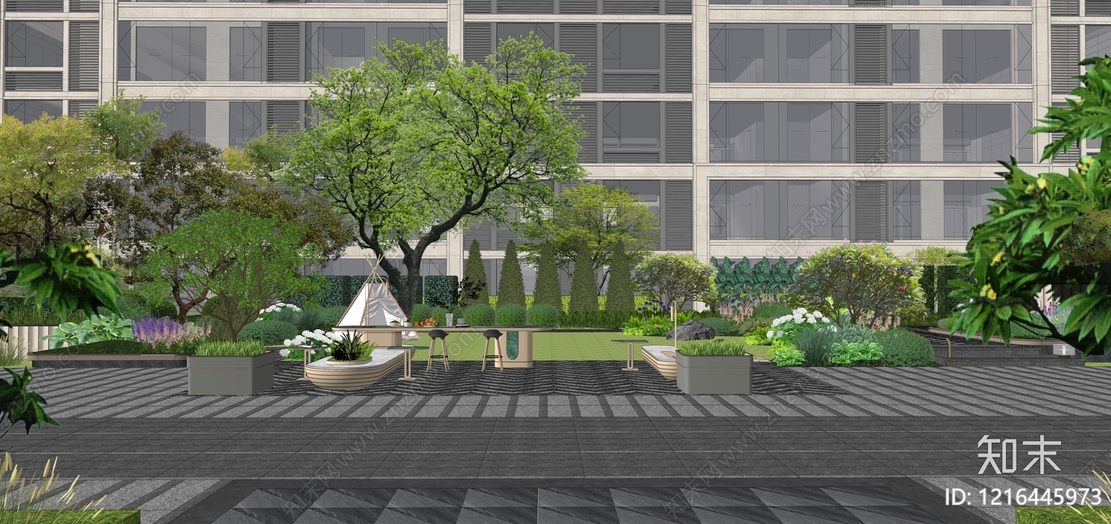 - 现代简约小区景观 小区景观 登高面景观 硬质铺装