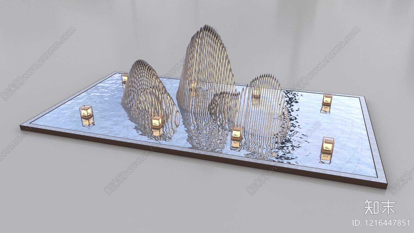 - 新中式水景设施 景观雕塑水景水池 雕塑造型 新中式地灯 水景池水景观 入口水景