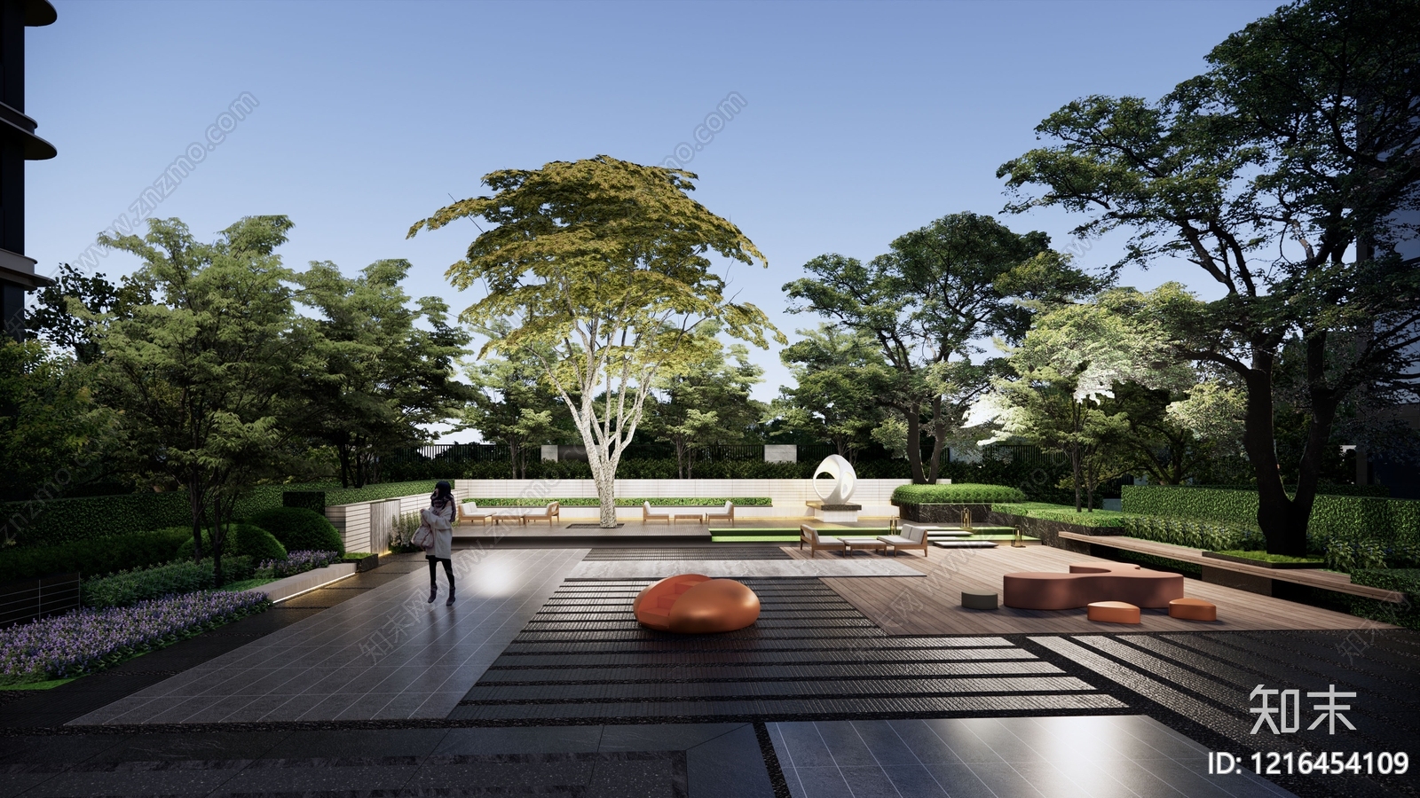 - 现代简约景观小区景观 居住区花园空间 登高面会客 草坪空间 花园洽谈空间