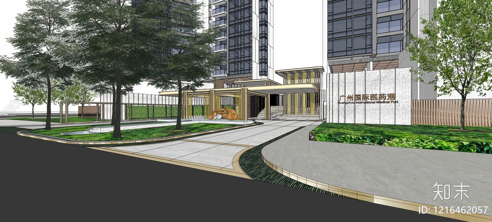 - 现代简约小区景观 入口景观 大区景观