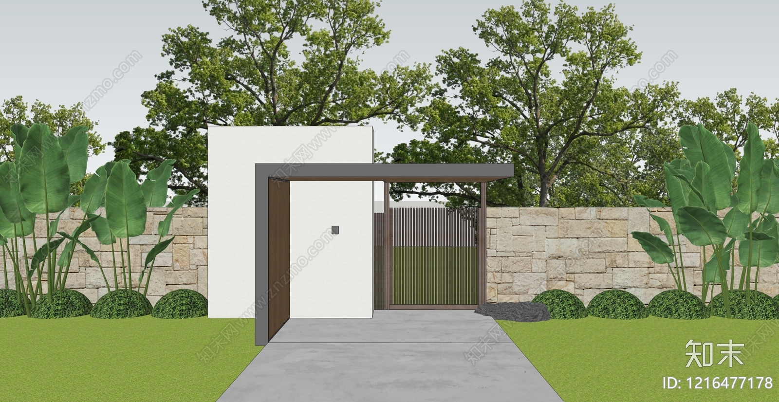- 现代极简入口大门 庭院大门 现代大门 景观大门