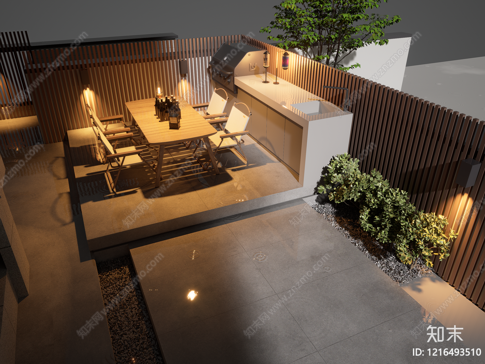 现代简约别墅庭院 现代极简轻奢风 宅院阳台露台内庭 外摆餐桌椅烤箱 原木帆布石材金属 茶歇聚餐放松惬意