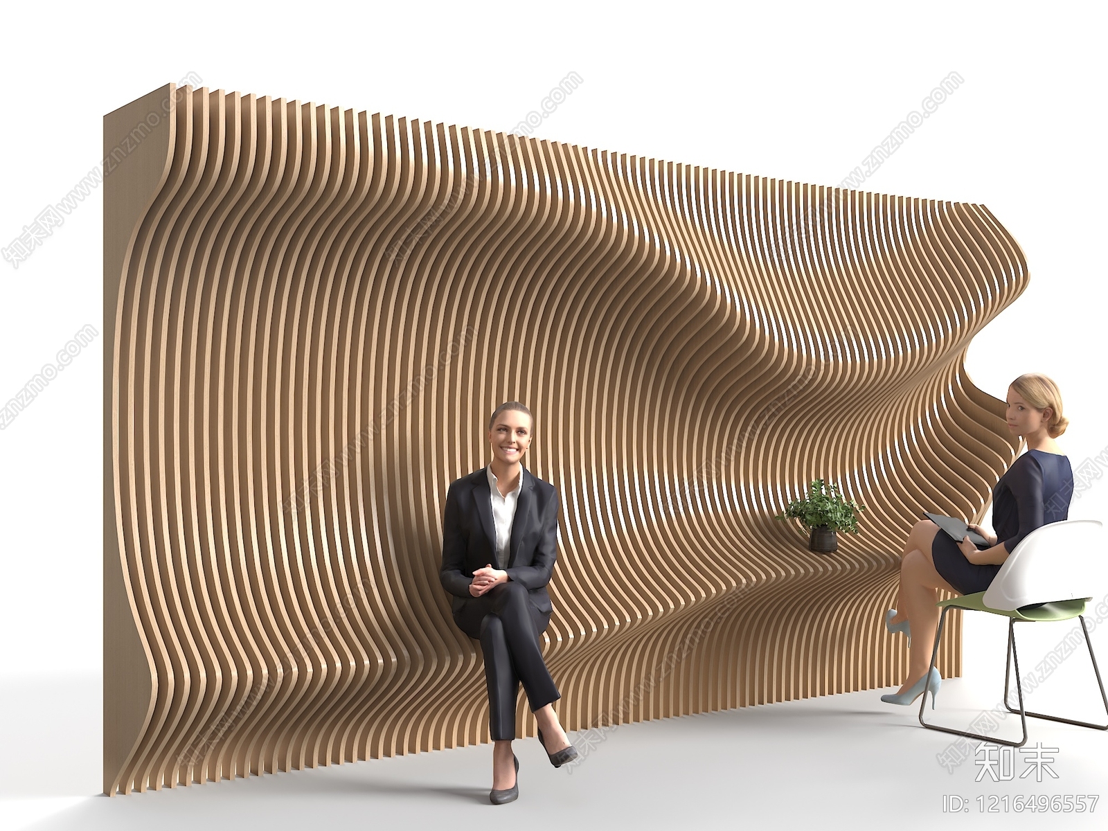 - 参数化设计背景墙 异形格栅背景墙 背景墙座凳 座人格栅墙 波纹格栅背景 格栅景墙