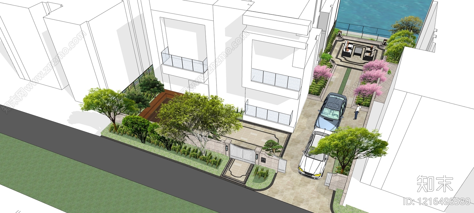 - 现代简约别墅庭院 现代庭院 小面积院子
