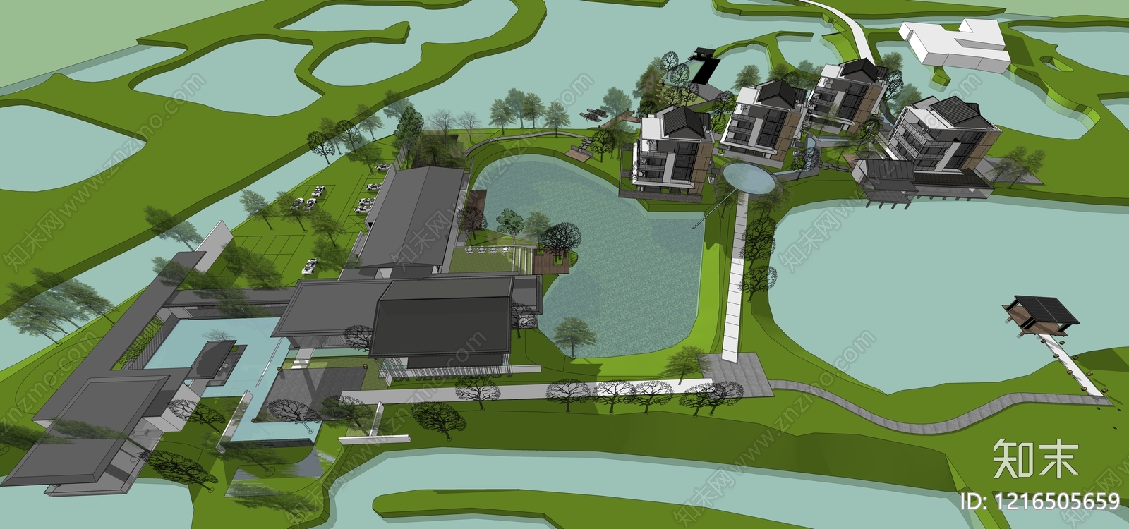 - 新中式鸟瞰规划 文旅小镇 度假小镇