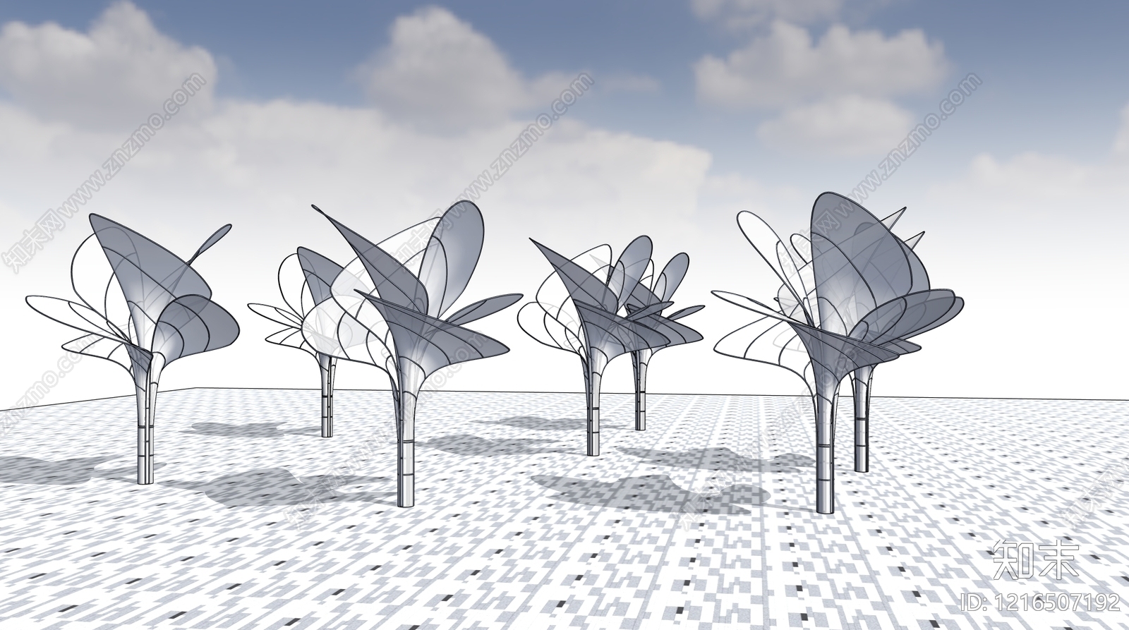 - 参数化设计艺术装置 景观雕塑 景观小品 彩色雕塑 线条小品 拉线雕塑